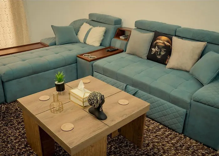 Among the self-catering amenities provided is an equipped kitchen with coffee and tea makers, a fridge, and an oven. Sky High Harmony In Rehab - Peaceful Elegant Apt is also 46 km from El Giza railway station.
